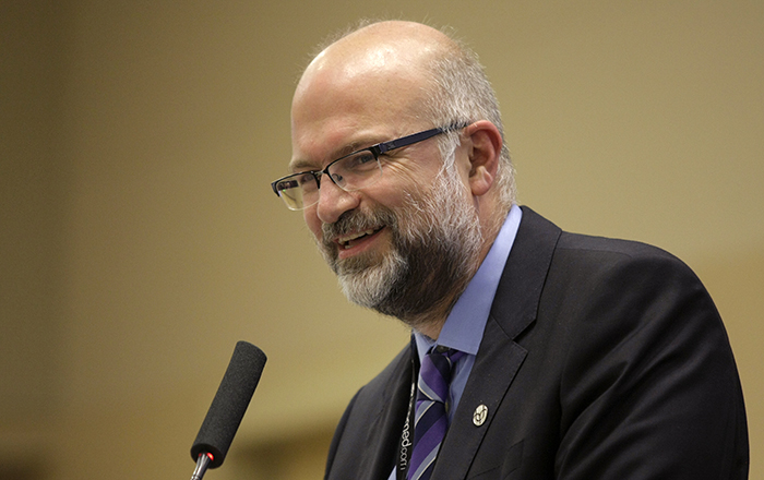 Sachin Pawaskar, leader of UNO's IS&T Capstone program, addresses the...