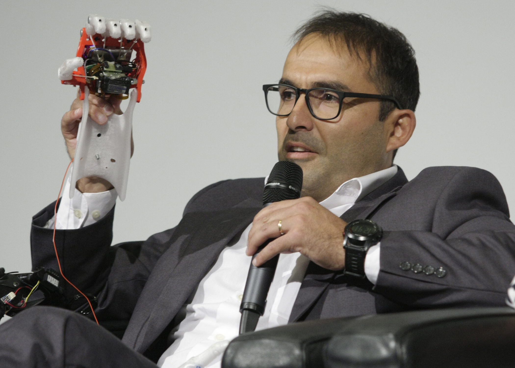Panelist and Tethon 3D CEO Karen Linder meets with guests immediately after the...