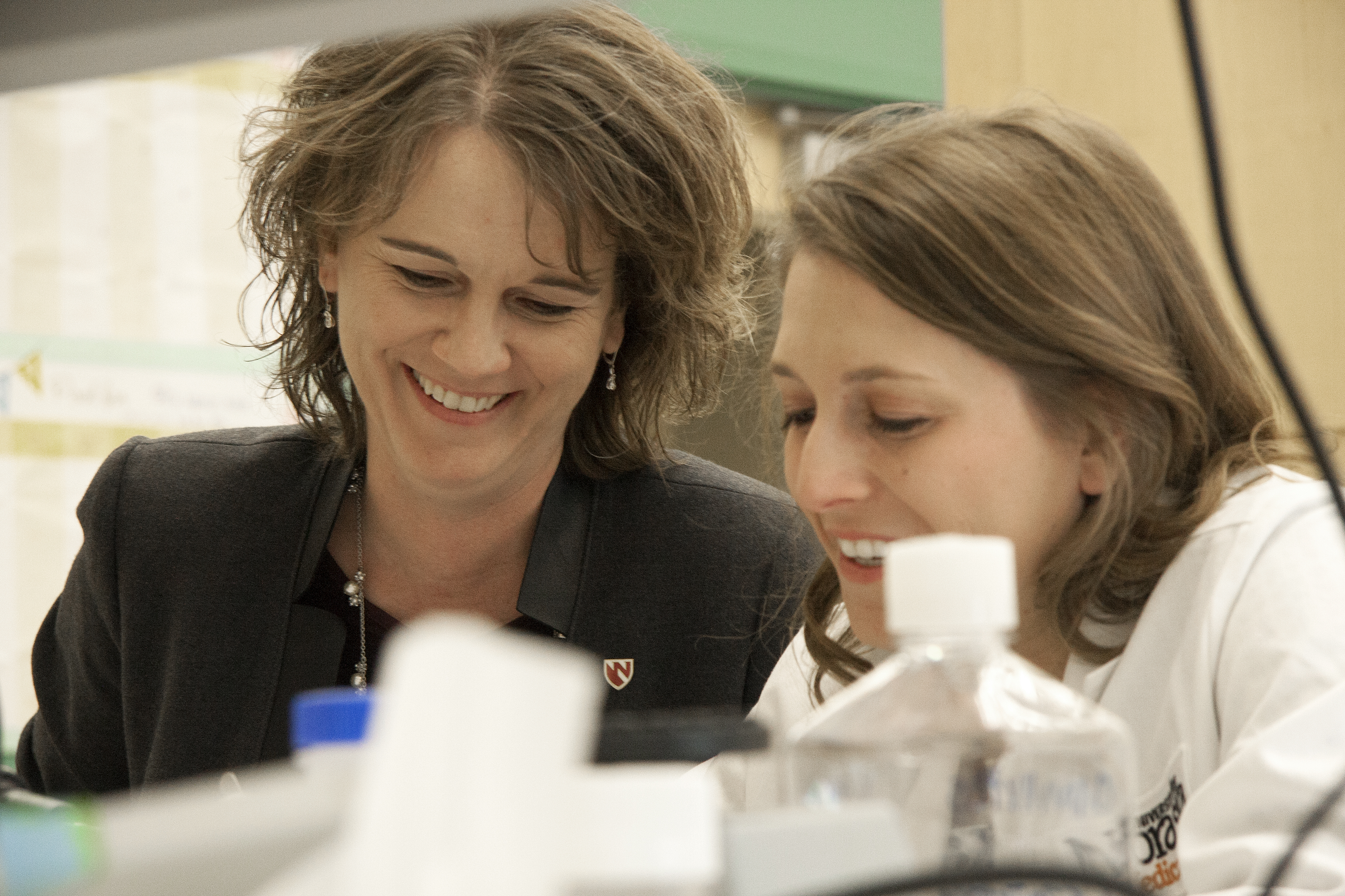 UNMC Professor of Pathology Tammy Kielian, PhD, (left)—seen here with...