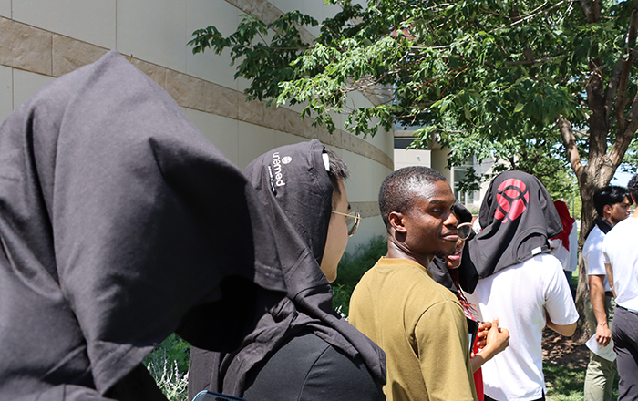 UNO grad student and inventor, Cody Anderson, chats with a guest shortly after...