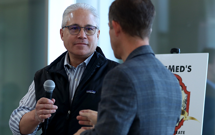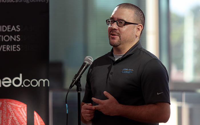 Adrian Blake, CEO at UNMC startup Precision Syringe, demonstrates the functions...